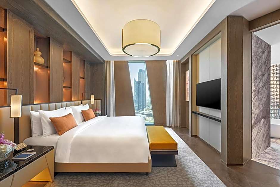 The suite provides a tea and coffee maker and a seating area. The unit offers 1 bed.